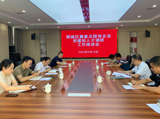9月13日下午,區(qū)委常委、組織部部長白濤一行到雨城區(qū)國資公司開展雨城區(qū)屬重點(diǎn)國有企業(yè)黨建和人才工作座談會。集團(tuán)公司總經(jīng)理何偉,公司在家經(jīng)營班子成員參加會議